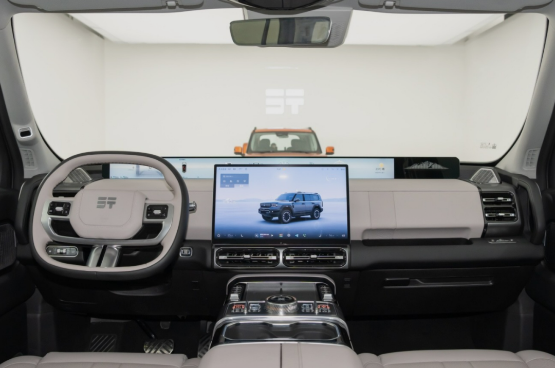 虽然外形硬派,但捷途G700的车内却是舒适豪华的风格,大量皮质包覆加上镀铬点缀高级感十足,搭配15.6英寸悬浮式中控屏和中控台前端的一块35.4英寸贯穿式天际屏,科技感也相当出色。并且新车采用5座/6座两种布局,能覆盖更多受众。