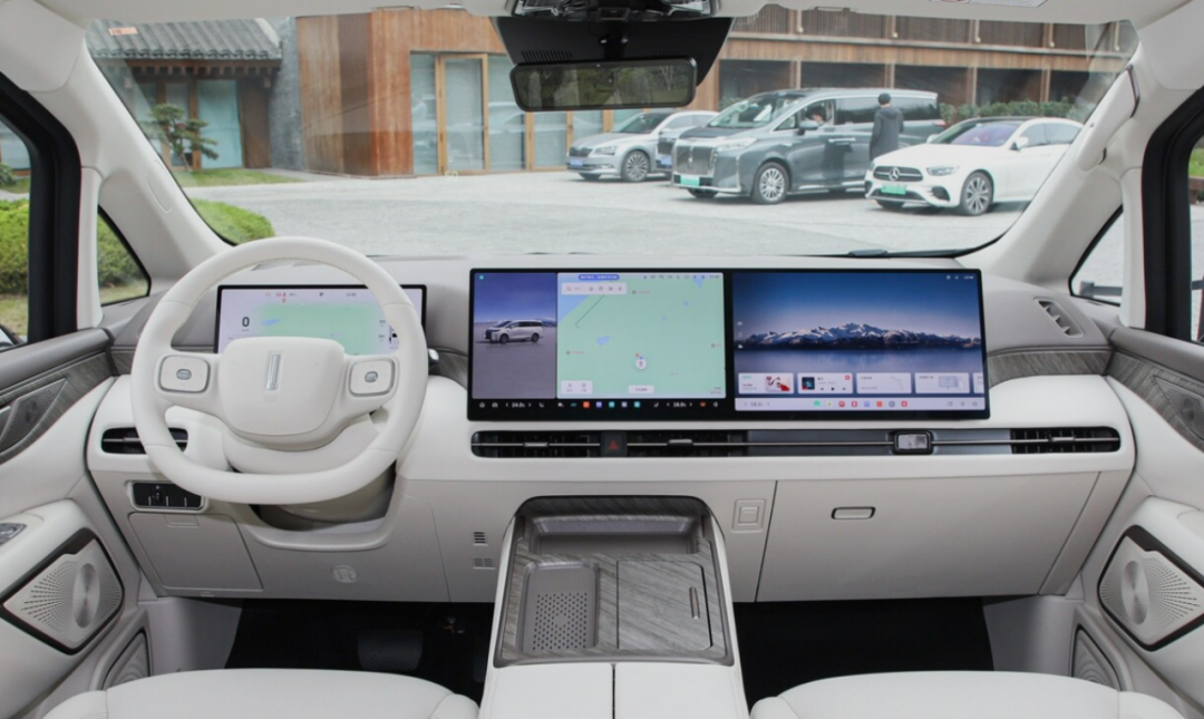内饰部分,前排配备12.3英寸仪表屏、双15.6英寸中控屏与副驾屏,车机系统采用Coffee OS 3.2智能操作系统,搭载车规级8295芯片,属同级顶流。