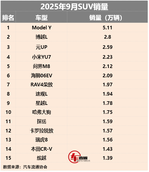 另外,随着2025年最后一个季度接近收尾,10月SUV市场销量有可能会给大家带来更多惊喜,让我们拭目以待。
