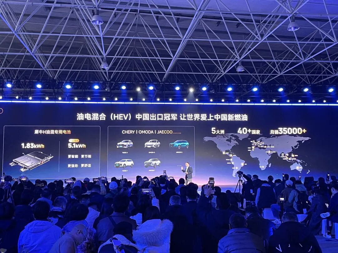 值得一提的是,奇瑞还将在HEV车型上搭载更大容量、更安全的犀牛电池,并以此开创“5度电”全球新燃油电感时代,在海外市场继续“攻城拔寨”。