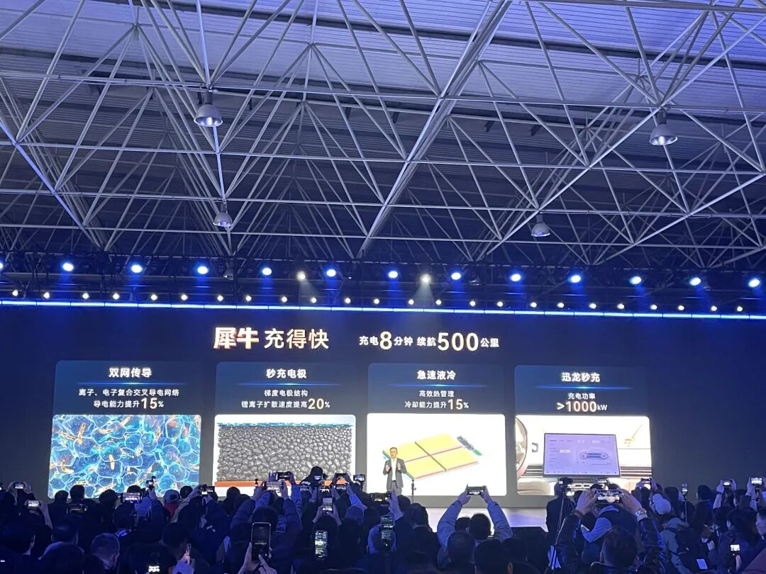 先看电池方面,犀牛电池“充得快、用得久、够安全”:充电8分钟,续航即可达到500公里;最高循环寿命达5000次,更拥有360安全守护。