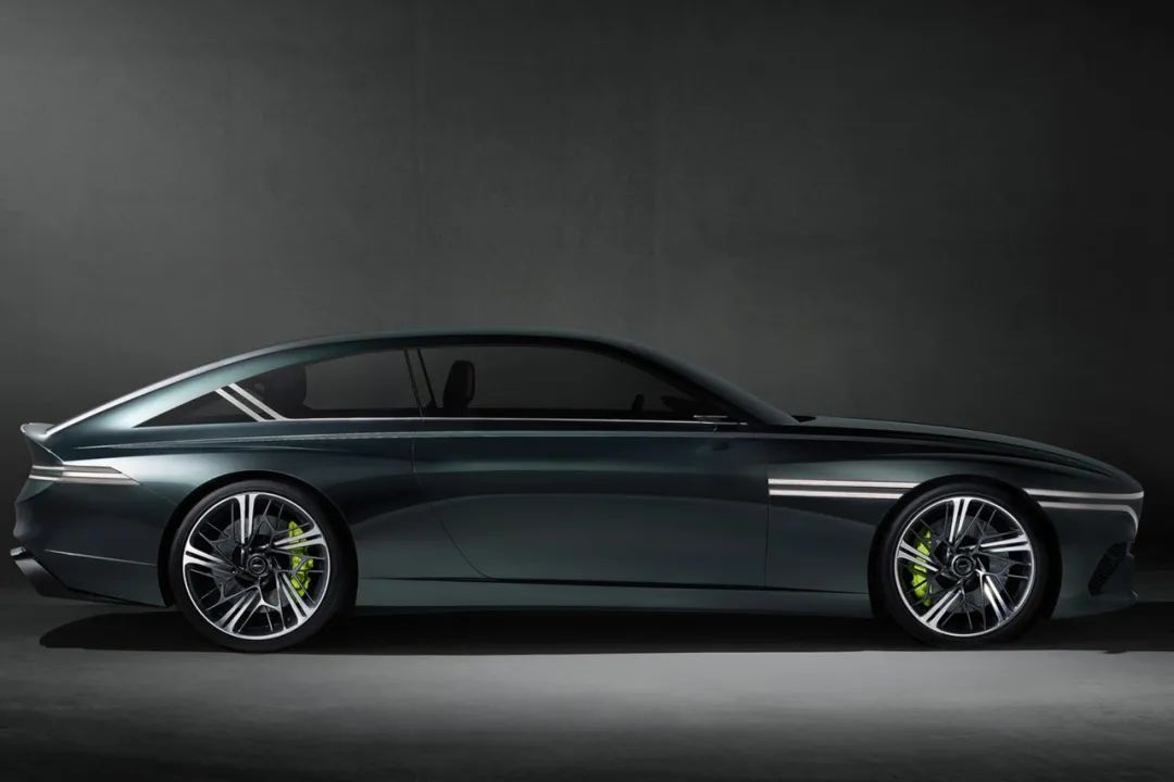 新车侧面线条同样十分优美、流畅,通过大倾斜度的溜背造型营造出一种猎装车的感觉,乍一看还以为是Panamera。不仅如此,我们还可以看见,新车还配备了尺寸非常大的轮毂,配合双门设计以及低趴的姿态,运动气息十分凸显。不得不说,捷尼赛思对于车辆外观的打造确实有自己独到的理解。