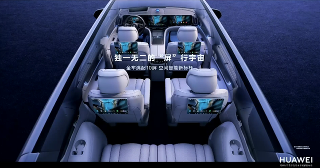 更令人震撼的则是业界首个32英寸车规级投影巨幕,通过华为灵犀指向遥控,为后排乘客带来便捷而愉悦观影体验。