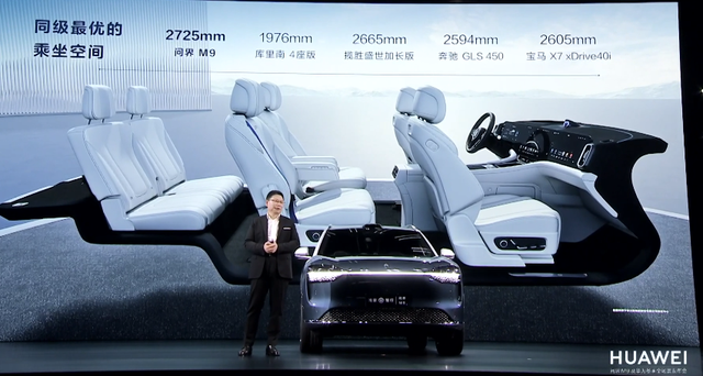 此外,问界M9车身尺寸分别为5230/1999/1800毫米,轴距为3110毫米。宽体长轴创造的良好空间“底子”并没有被浪费。此次问界M9基于以人为本的设计理念,有效乘坐空间长达2725毫米,一/二/三排空间分别达1045/1060/950毫米。同时搭载支持14向电动调节+8点按摩,支持通风、加热等功能的女王副驾,拥有双121°零压角二排零重力座椅,可带来越级的乘坐体验。