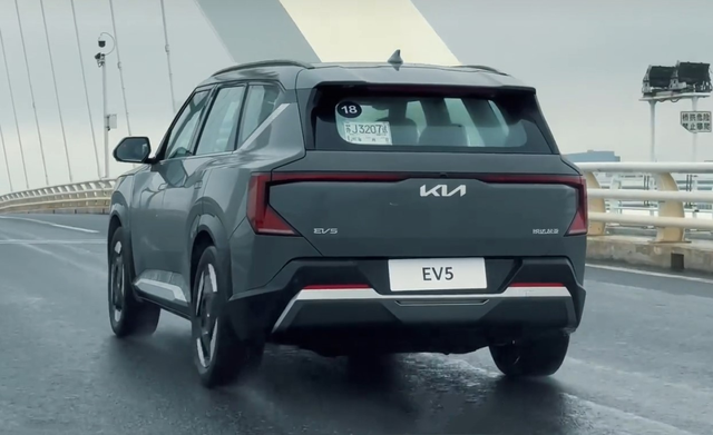 在试驾前,我们先简单了解下起亚EV5的一些亮点。先给大家说说它的设计,起亚EV5在造型上延续了此前概念版的理念,采用起亚对立统一的全新设计,比如科幻感十足的前大灯等细节造型都延续了下来,有着非常高的辨识度。并且它前包围还设有梯形通风口,并配有银色护板,营造出大胆前卫、方正硬朗的视觉效果,设计很个性。