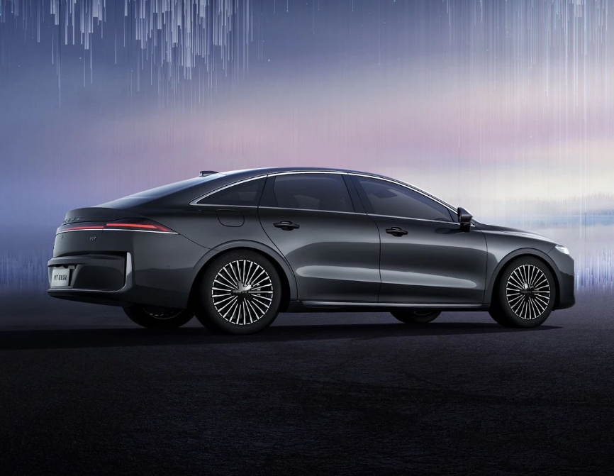 侧面来看,荣威M7 DMH车身线条简洁流畅,车门下部设计凹凸有致,有效地提升整车硬朗风格,再加上多辐式轮毂,车辆高档感是到位了。作为一款新能源车型,新车没有采用隐藏式门把手,而是沿用传统式门把手,“不求花哨只求实用”的德系范儿很浓。