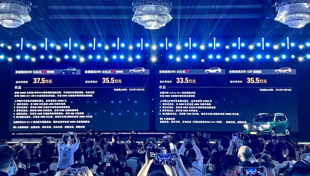 日前,全新坦克500正式上市,共四个版本的售价为33.5-37.5万元。作为一款外表霸气粗犷、内里却配齐了“冰箱彩电大沙发”的中大型SUV,新车都有哪些升级与亮点?又能否在市场表现方面更进一步?接下来,圈哥就在第一时间带大家去现场感受。