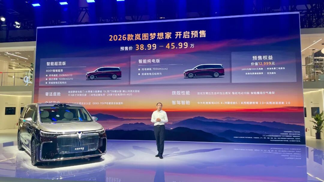 本届成都国际车展首日,2026款岚图梦想家正式开启预售,两个动力版本的预售价为38.99-45.99万元。作为厂方在自身最为擅长的细分领域之又一力作,这款全面焕新升级后的“新时代旗舰MPV”都有哪些主要的产品亮点?接下来,圈哥就带大家去现场感受一番。