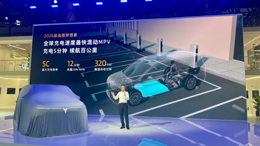 为了让用户远离“里程焦虑”,新车通过配备62.5kWh之同级最大混动电池等手段实现了高达350km之CLTC纯电续航里程,位居全球混动SUV之首。此外,同级唯一的5C超充技术则带来320kW之峰值充电功率,让2026款岚图梦想家从20%补能至80%仅需12分钟。