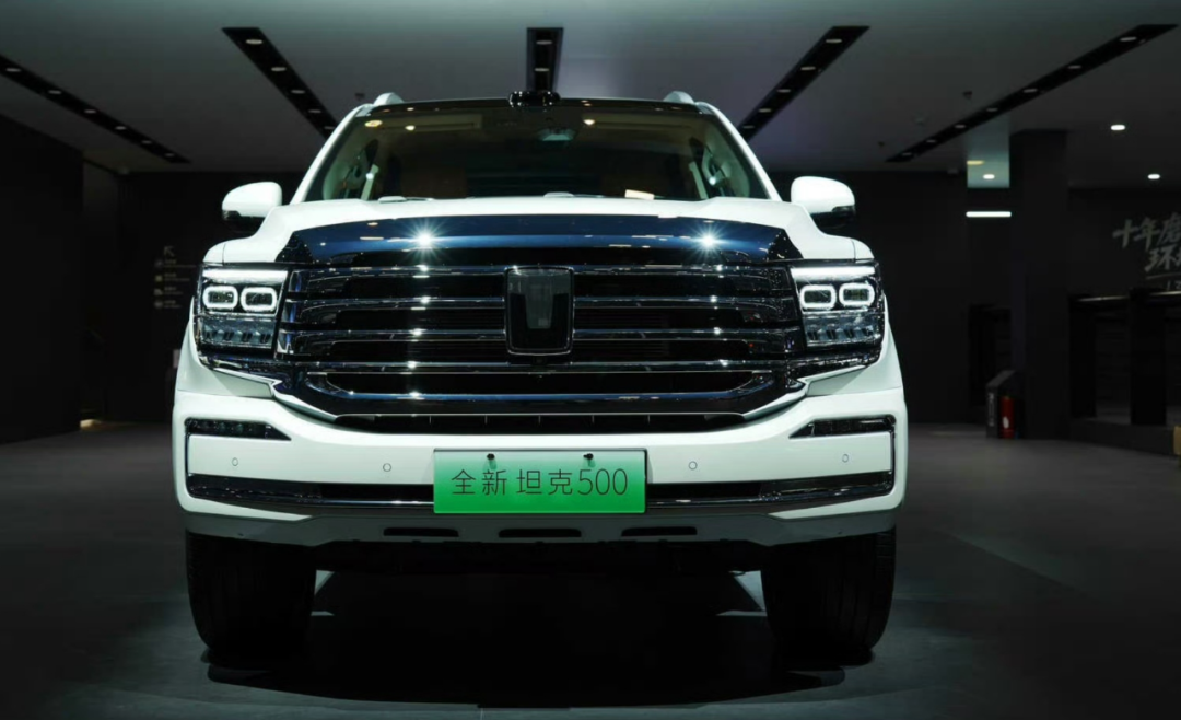 外观上,全新坦克500给人第一印象就是厚重而结实,很有狂傲不羁的越野气质。从前面看,大尺寸的前格栅配合闪亮的镀铬件,显得非常上档次,再加上两侧极具视觉冲击力的大灯,让这款车霸气十足。