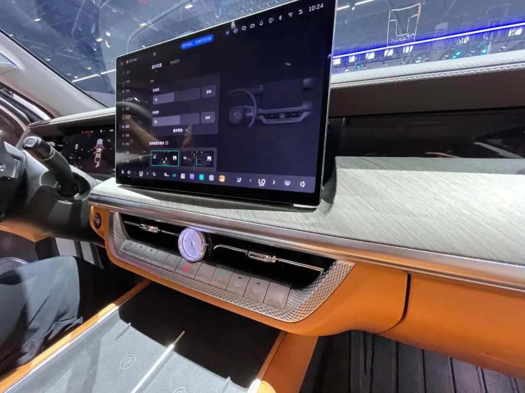 进入车内,简洁而实用的设计风格,带来满满的高级感。同时,12.3英寸全液晶仪表盘+14.6英寸多媒体中控屏+HUD抬头显示,让科技感扑面而来。