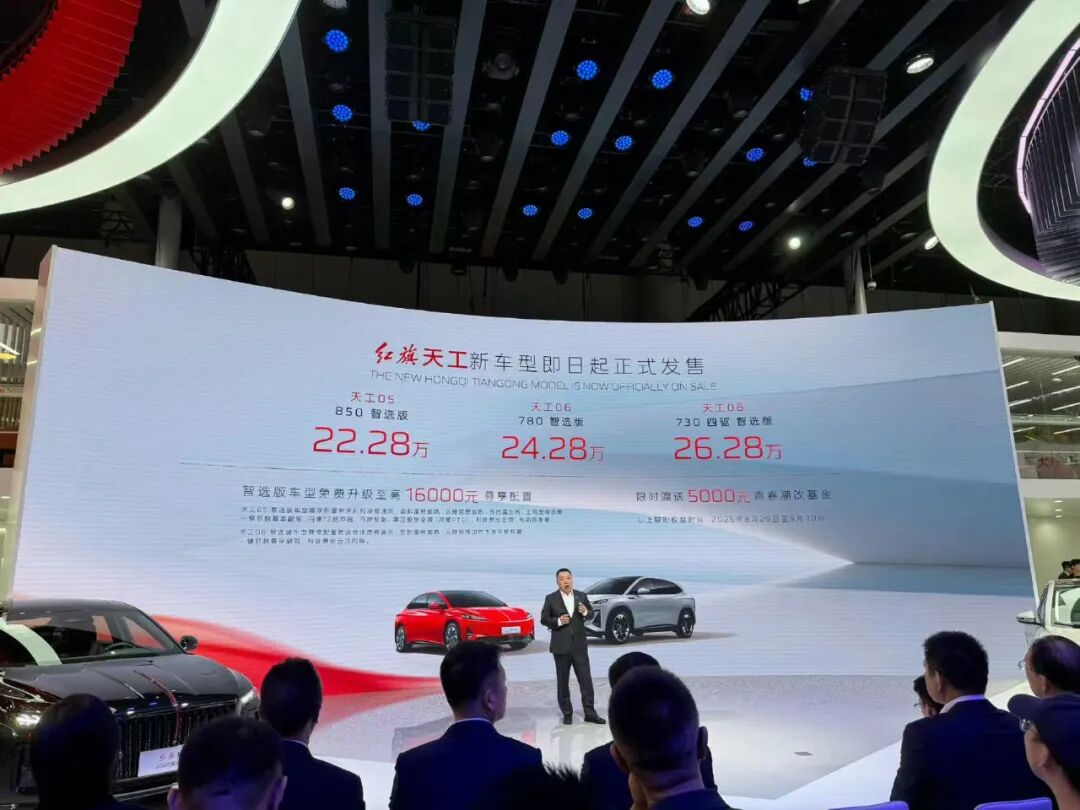 此次成都车展上,红旗品牌再次搬出了天工智选版。其中,天工05 850智选版22.28万元、天工06 780智选版24.28万元、天工06 730四驱智选版26.28万元。