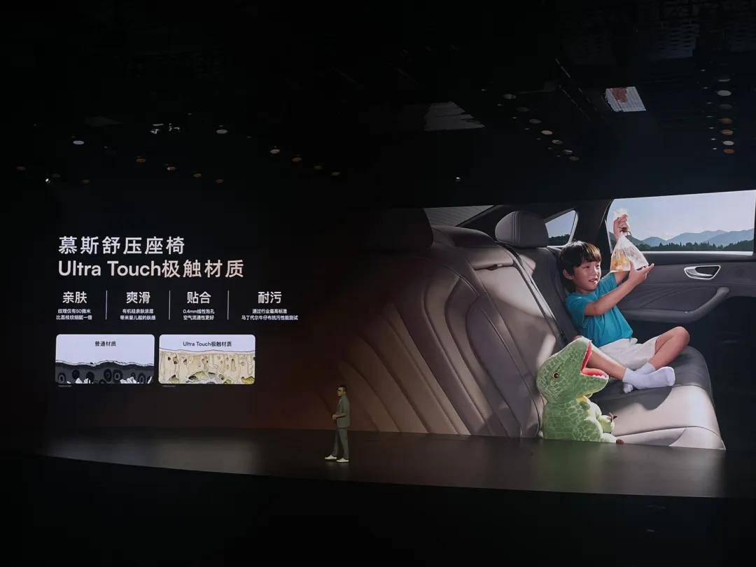 当然,荣威M7 DMH不仅仅是看起来豪华。在乘坐舒适性上,新车也采用了同级唯一的乳胶感慕斯舒压座椅。这套座椅首先在面料上使用了Ultra Touch亲肤表层极触材质,手感格外细腻和丝滑,同时也具备极高的抗污性能。