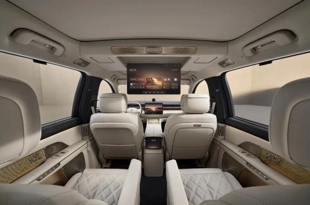 进入车内,15.6英寸AMOLED中控横屏画质细腻,第二排的同级唯一21.4英寸车规级mini-LED天空屏则拥有3K分辨率。同时,同级最大的52㎡软包覆面积实现了主接触面100%覆盖,Nappa真皮座椅、“寰宇星轨”金属拉丝音响罩盖及臻选云影真木等均极具质感。