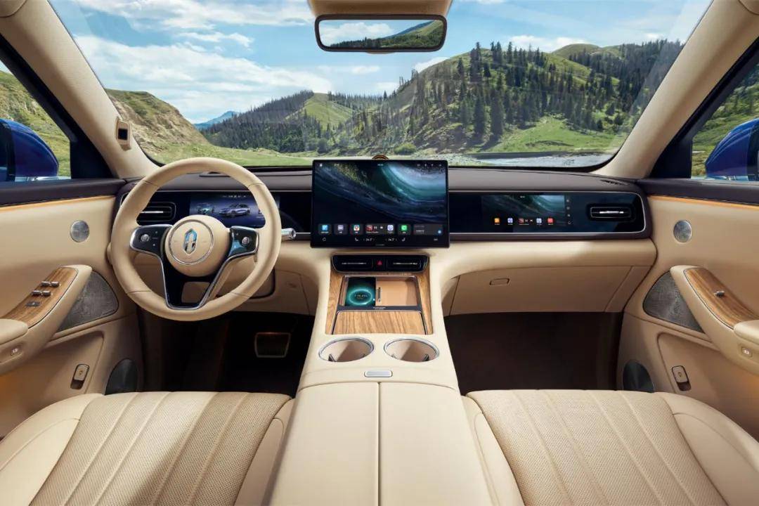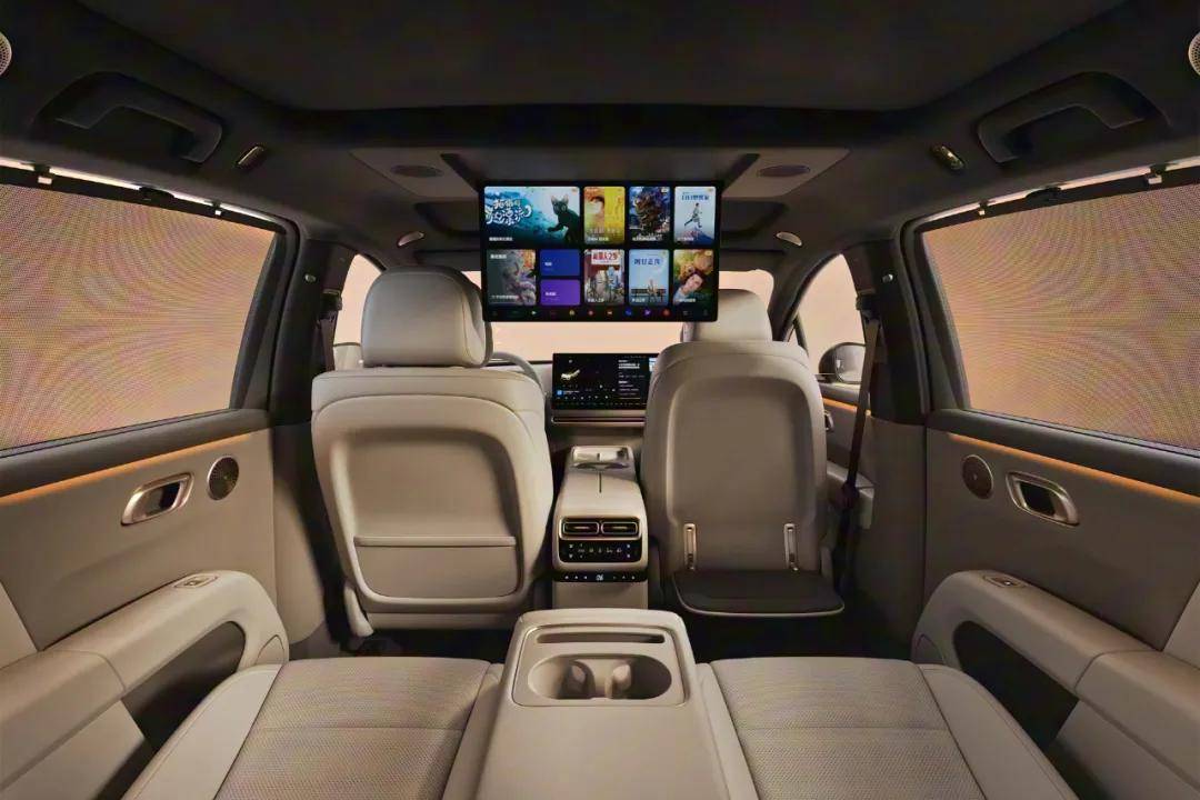 和外观一样,理想i6内饰设计同样是家族式的风格,前排中控大屏加上后排吸顶屏,非常典型的简洁科技风。不过因为定位和尺寸的原因,理想i6仅采用五座布局。