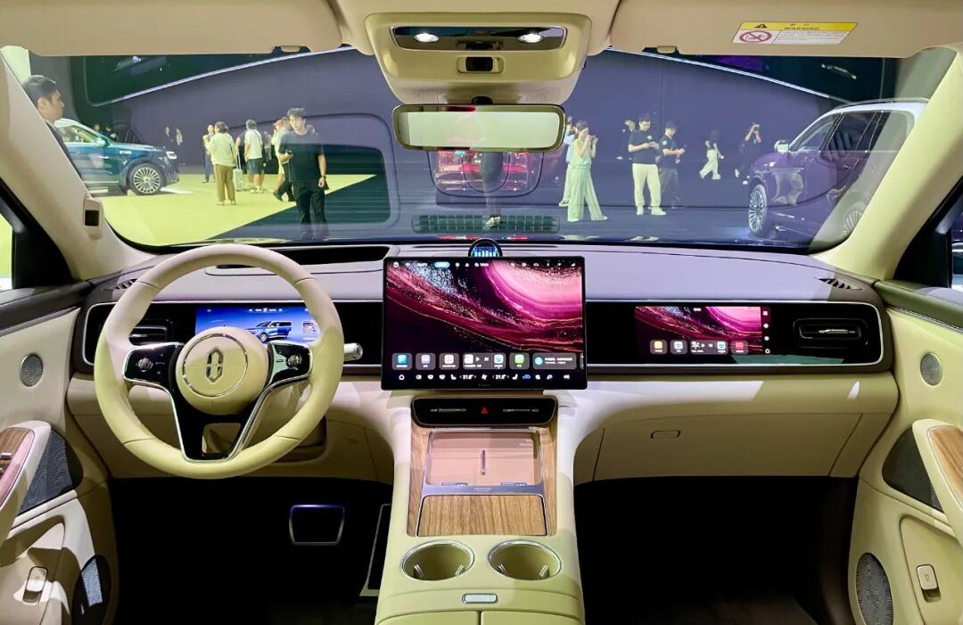 进入车内,悬浮式中控屏和全液晶仪表布局合理、功能丰富,三辐式多功能方向盘与主副驾之间的双侧手机无线充电位+双杯座亦是鸿蒙智行的设计元素。在智能化方面,新车全系标配鸿蒙座舱,HUAWEI ADS 4辅助驾驶系统则有超高性能192线激光雷达等强大硬件加持。