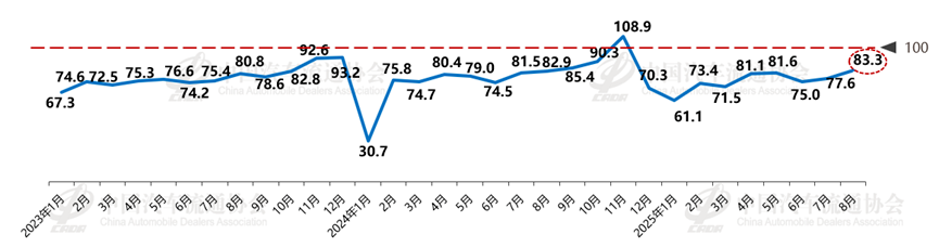 数据显示:8月汽车消费指数为83.3,高于上月;8月入店分指数为80.5,较上月有所上升。