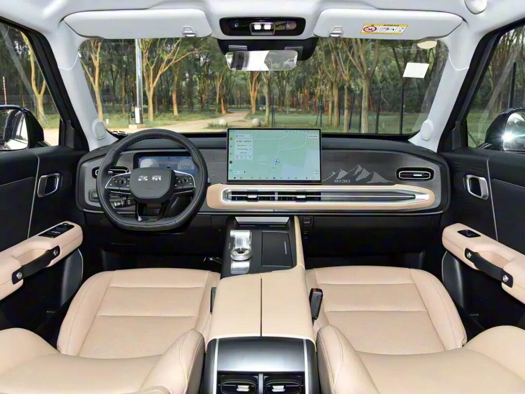 内饰方面,BJ30旅行家的设计十分简洁大气。其中,10.25英寸+14.6英寸的双屏组合,带来满满的科技感。此外,该车采用拨杆式换挡机构和驾驶模式切换旋钮,看起来更像专业的越野车。