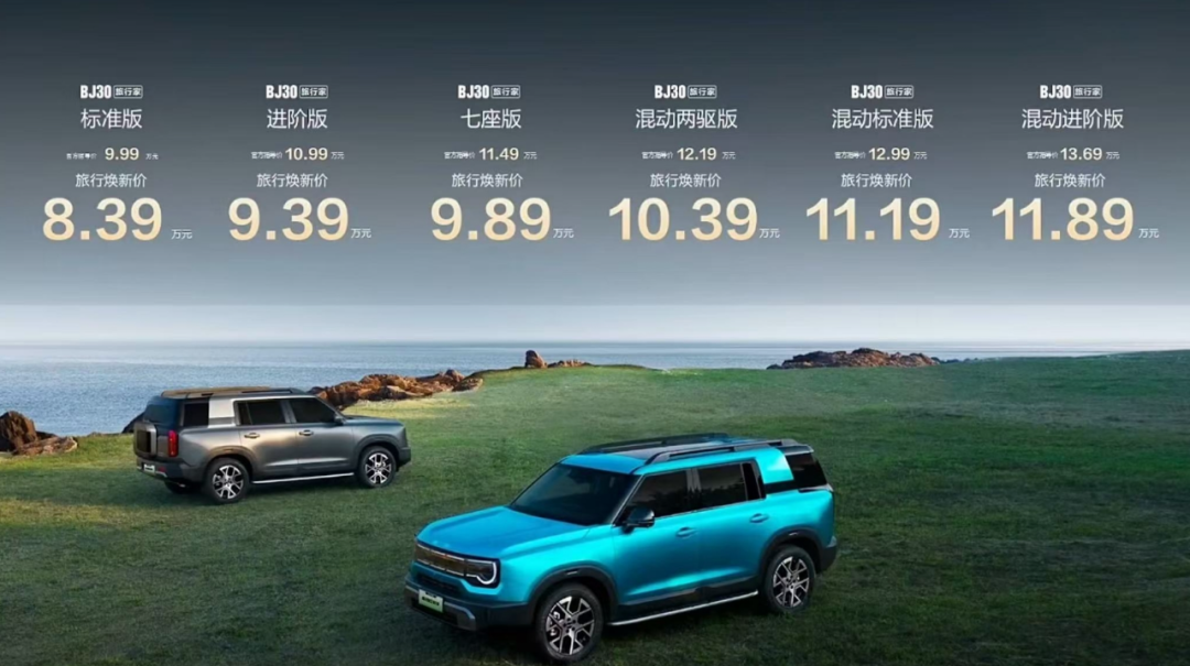 日前,北京越野BJ30旅行家正式上市,6款配置,焕新价为8.39-11.89万元。相较于此前10.29万元起的预售价,上市起售价又少了近2万元。仅从名字来看,该车主打就是户外自驾用车,整车以实用性而见长,非常符合当下年轻人的用车需求。