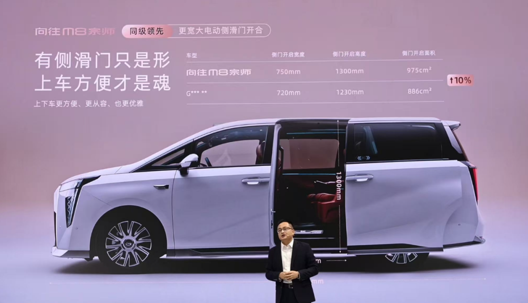 当然,作为一款高端MPV,新车对舒适性有着异于常人的标准。除了空间大外,该车拥有同级领先更宽大电动侧滑门开合、全软包裹分段式二排长拉手以及2+2+3的7座布局,让它更适合商务接待。