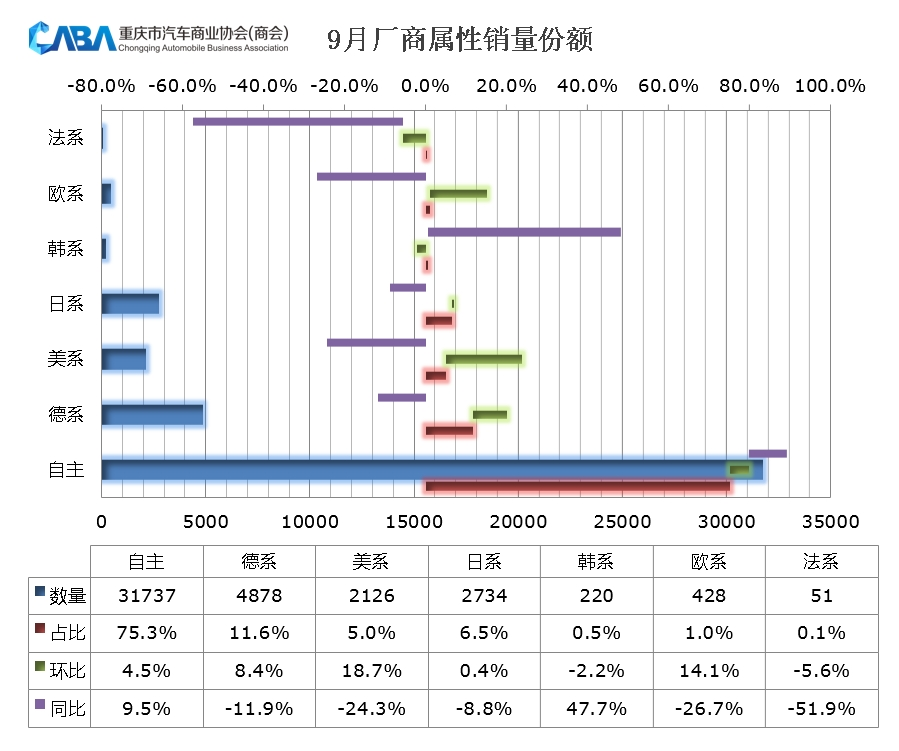 从数据上看,9月份重庆车市轿车、SUV销量稳中有升,同环比双双增长。而MPV销量表现低迷,与8月市场保持一致,由此可见重庆消费者对MPV的需求有限。
