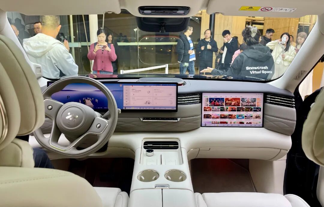 进入车内,采用旗舰级Mini LED显示技术的27.1英寸5K臻彩驾舱屏与15.6英寸3K副驾娱乐屏颇为吸睛,且布局错落有致,极具层次感;同时,第二排的21.5英寸娱乐屏支持真4K高清分辨率。此外,多达15条氛围灯带可实现观影沉浸式灯光联动,科技感十足。