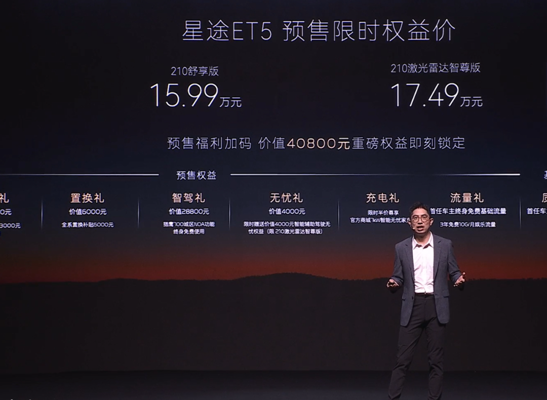 这两年,奇瑞汽车愈发“不客气了”,随着一款又一款新产品推出,极大地加快它在新能源领域的前进步伐。日前,星途ET5正式开启预售,两款车型,预售价格分别为15.99万元、17.49万元。