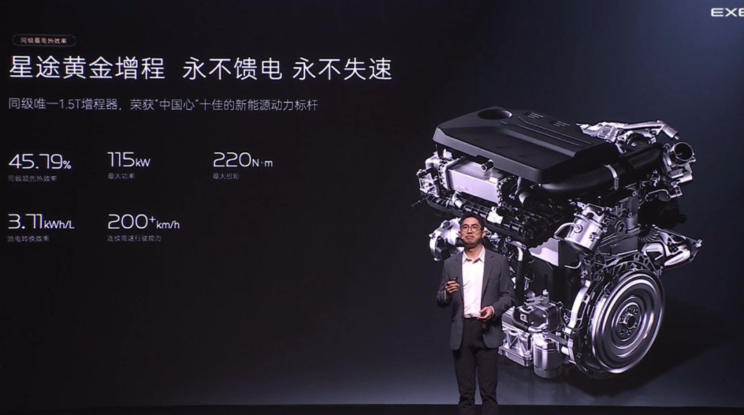 动力也是星途ET5一大看点,自研1.5T黄金增程器的加持,为整车带来115kW的最大功率及195kW的电机功率。