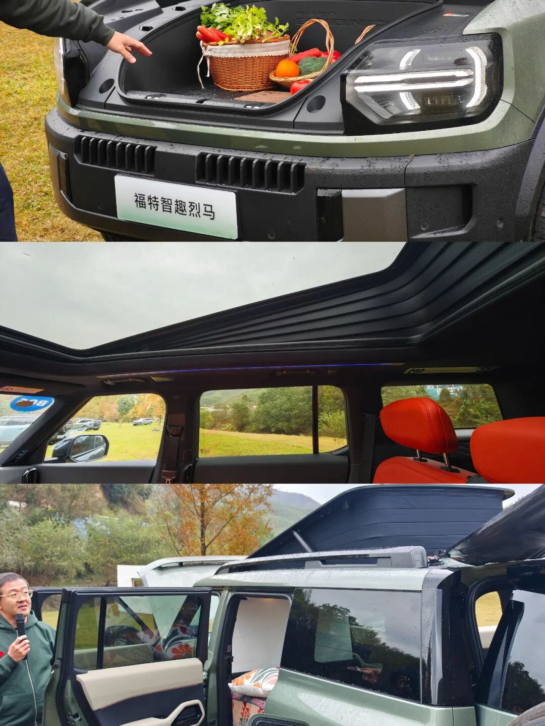 除了中看外,该车的纯电版车型带电动前备厢,且自带照明和排水功能,百年大厂的贴心程度不服不行。值得一提的是,新车还有一个升顶露营的模式——天幕可以电动举升,提升车内空间。同时,车内大床由前后排一键放倒组成,因此不会侵占后备厢空间。