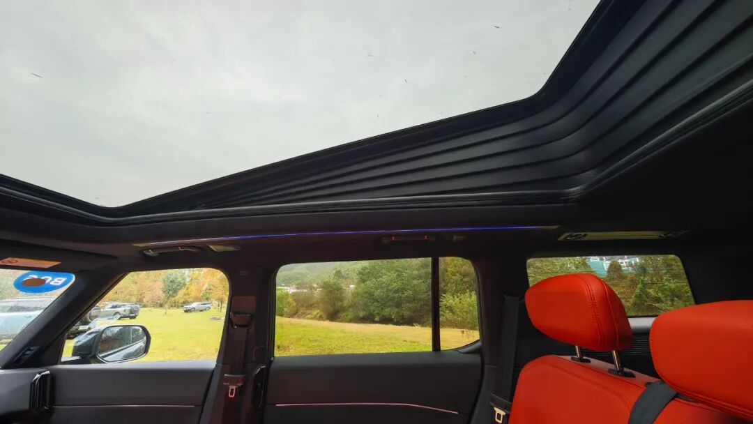 一键启动升顶功能后,车内后排头部空间可提升36厘米,搭配“一键成床”设计,前后排座椅放倒后无需挪动后备厢物品,就能形成宽敞平整的睡眠区域。坐直起身毫无压抑感,这种Loft般的起居体验,让车宿彻底告别了传统SUV的局促。更贴心的是,升起的天幕四周可替换罩子,蚊帐适配夏夜露营,防风幕布应对复杂气候,全场景适配能力拉满。