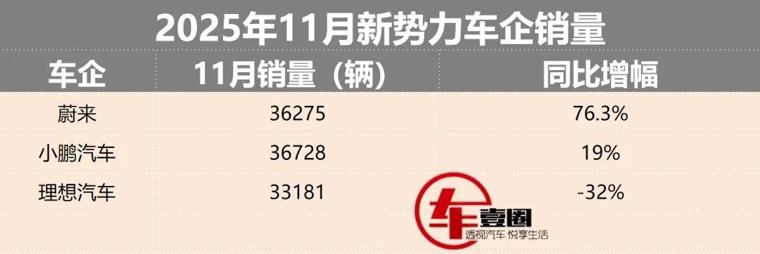 随着时间进入12月,各车企也纷纷公布了11月销量数据。从竞争激烈的新能源市场来看,新势力代表车企“蔚小理”在11月销量重回同一起跑线,销量均超3万辆。那么在今年仅剩的一个月时间里,三家车企谁又能笑到最后?明年的日子是否会更“难过”?