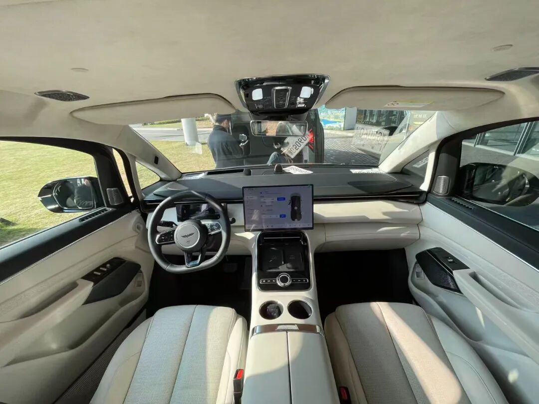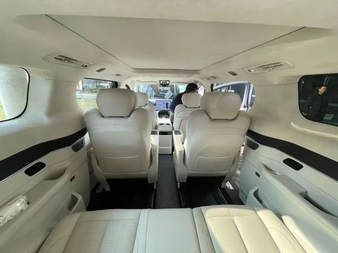 进入车内,银河V900更是内有乾坤。首先,小尺寸液晶仪表、HUD抬头数字显示、悬浮式中控大屏以及第二排17.3英寸吸顶屏、扶手触控屏等配置,带来满满的科技感。再加上大面积麂皮包覆、电子怀挡、双50W手机无线快充等,高级感给到位了。