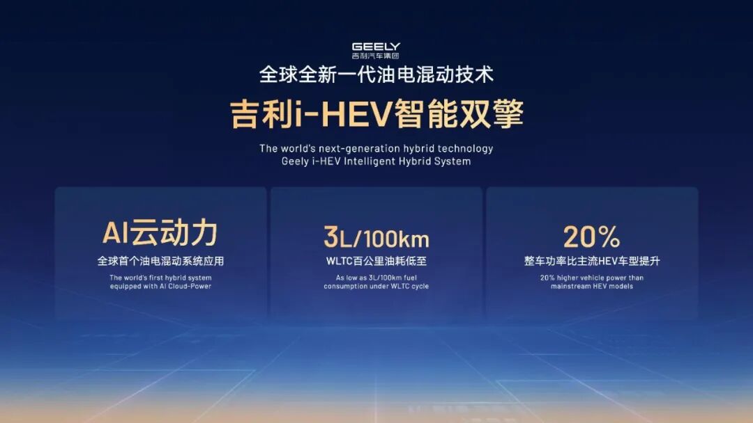 既然是“全球新一代油电混动产品”,它能否超越“日系混动”?厂方表示,i-HEV智能双擎是全球首个应用“AI云动力”的油电混动系统,可将HEV的百公里油耗降低至3L;再配合吉利自研智能电驱,整车功率将比主流HEV提升至少20%,并让燃油车也拥有十足电感。