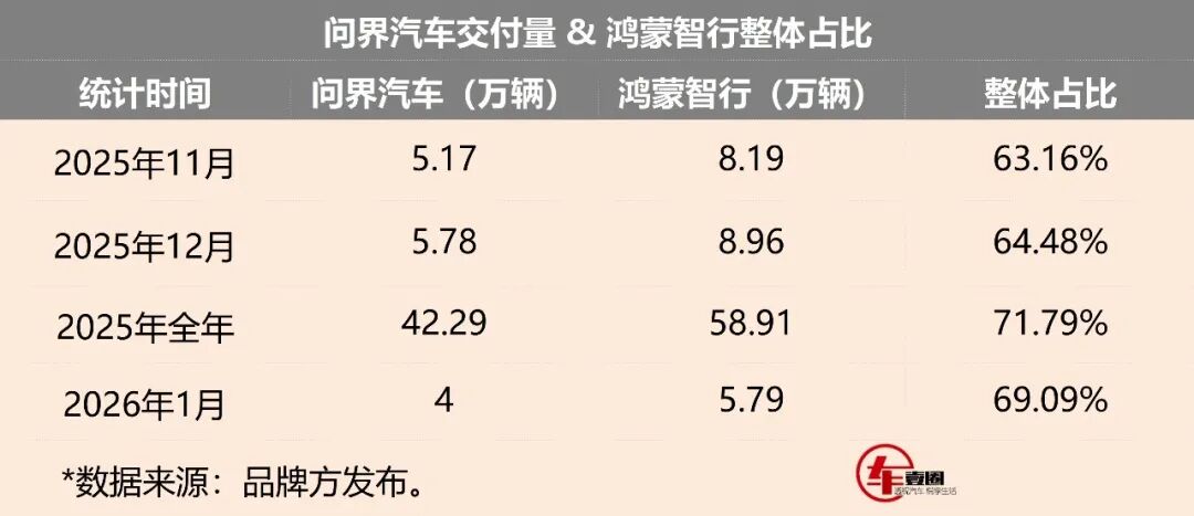 随着各大车企/品牌陆续发布其销量/交付量成绩,外界再次迎来了每月一度的“阅卷”机会。这其中,问界汽车也自2025年12月1日起首度开始发布上月数据,让各方有了更直观分析其在鸿蒙智行整体交付量中所占比重的机会。下面,圈哥就带大家共同去探究一番。