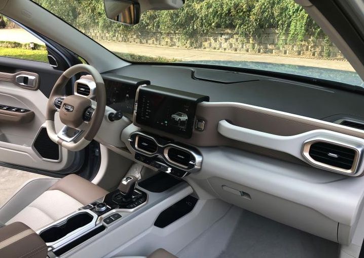 两侧的大灯也是和概念车相同的矩形设计,灯组也是呈竖型排列,再加上与引擎盖连接在一起的线条式日间行车灯,极具前卫科技感。而且连保险杠上的两个进气口都还原了概念车,不得不称赞吉利为这辆车下的付出的心血,这处设计为这款充满前卫科技的SUV增添了不少运动气息。