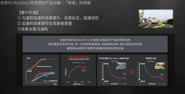 次世代MAZDA3昂克赛拉搭载了全新升级的SKYACTIV-G系列的2.0L自然吸气发动机,从活塞形状到喷油压力、火花塞点火时点都进行了优化,其最终的效果就是“燃烧更充分、排放更环保、提速更迅捷”。