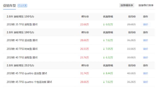 而随着下半年终端优惠力度不断加大,像奥迪Q5L终端优惠已经接近8万;奥迪A6L最高优惠达到9万;而奥迪A4L甚至30万不到就可以买到中高配......这样的优惠力度远比同级的奔驰、宝马车型都要来得更为凶猛,在产品力接近的情况下,这样的优惠谁能把持得住?