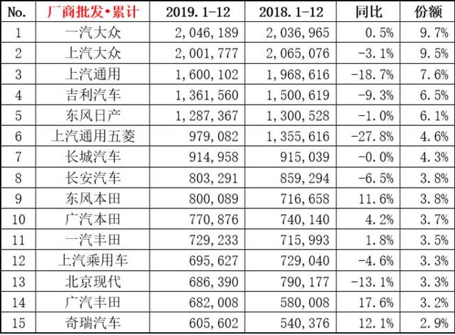 今天就凭着这份成绩单,和圈友们一起聊聊合资车企2019年的生存情况。