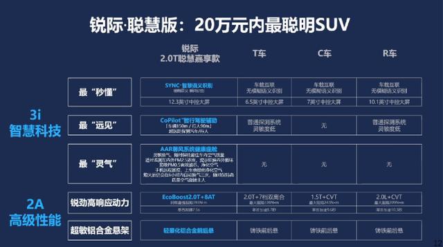 翻开新车的配置表发现,除了配备SYNC+语音识别、CoPilot驾驶辅助系统、AAR空调系统以外,诸如发动机自动启停、LED日间行车灯、真皮座椅、倒车影像、无钥匙进入、双区自动恒温空调等实用性配置一应俱全。同时,相比竞争对手诸如本田CR-V、丰田RAV4 荣放等车型性价比得到进一步凸显。