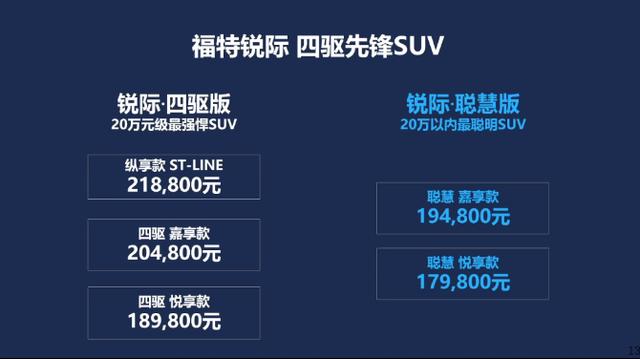 去年年底,长安福特全新SUV锐际正式上市,凭借着18.98-21.88万元的亲民价格、全系标配2.0T+8AT+四驱的动力组合以及诸多越级的配置,成为20万元级别的合资品牌四驱SUV首选,受到了众多消费者的追捧。虽然产品力不容置疑,但就选择余地而言,全系仅有三款车型可选,一定程度上还是限制了消费者的选择。