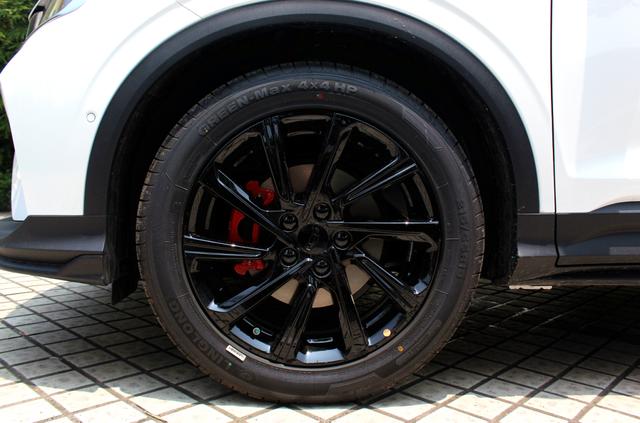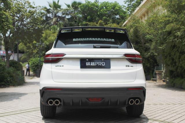 另外,从侧面诸多细节处也可以反映出这是一台PRO版车型。像战斧式熏黑18寸轮圈、红色卡钳、碳纤维纹路装饰外后视镜(下方有个摄像头,表明新车带360全景影像)、夸张的后扰流板等等,彰显缤越PRO Battle版的运动基因。