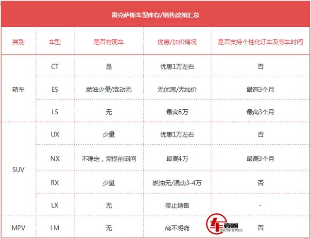 雷克萨斯销量超过凯迪拉克,其实很大程度的因素就是“价格”。此前,雷克萨斯车型终端都有不同程度的加价现象,不过由于特殊时期的影响,大部分配置的车型已经不再加价,甚至部分车型还有一定的优惠。