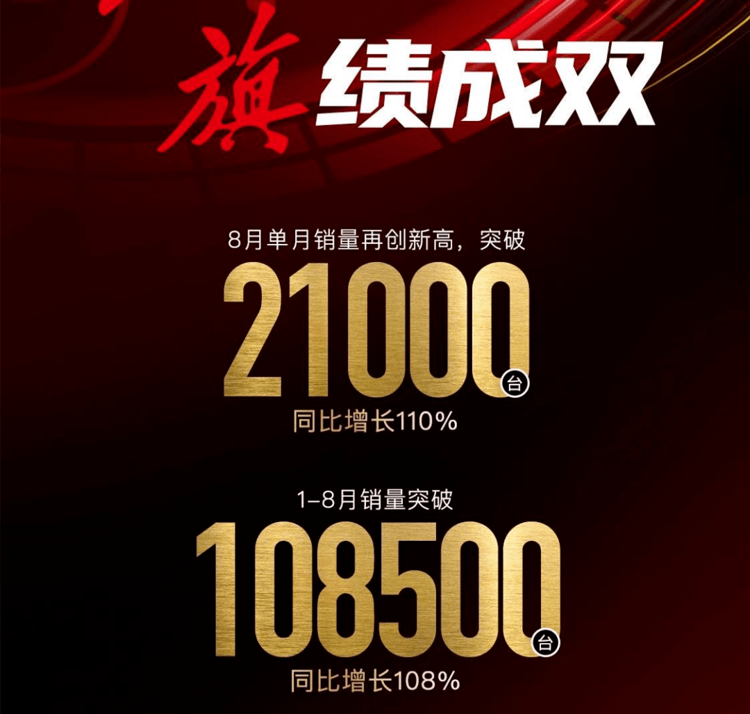 作为汽车界最积极的车企,在每个月月初,红旗都会迅速地公布最新的销量。在刚刚过去的8月,红旗品牌实现销量2.1万辆,同比增长110%,实现今年“八连涨”;今年1-8月,红旗累计销量为10.85万辆,同比增长108%,增势十分喜人。