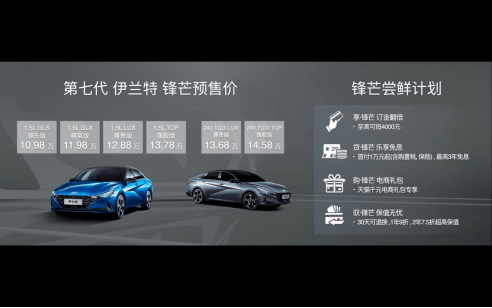 在本次车展上,第七代伊兰特正式开启预售,预售价格为10.98万元-14.58万元。同时,还公布了针对第七代伊兰特的享·锋芒订金翻倍、贷·锋芒享乐免息、购·锋芒电商礼包、驭·锋芒保值无忧的“锋芒尝鲜计划”,更凸显出北京现代“以用户为中心”的不变理念。