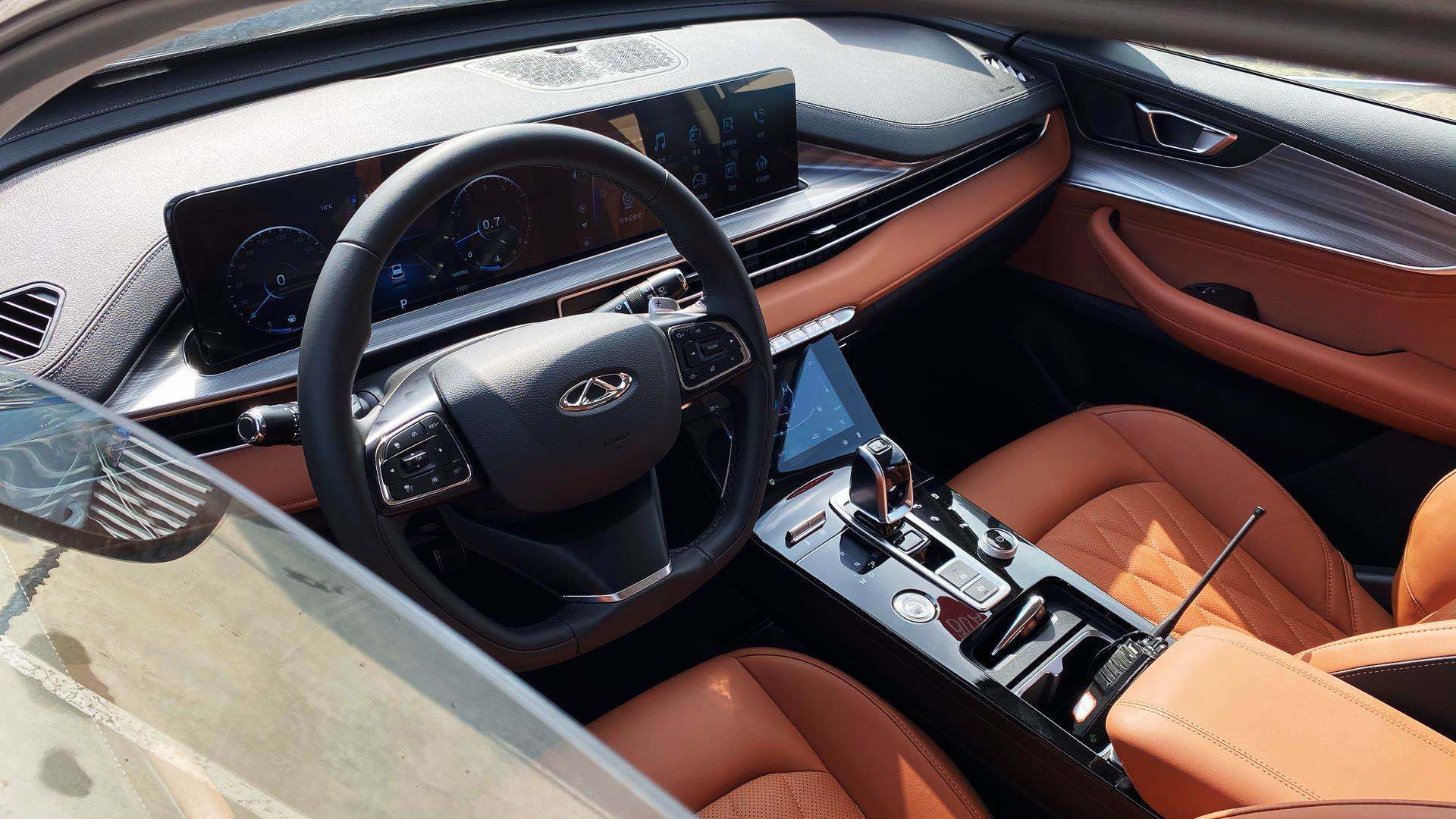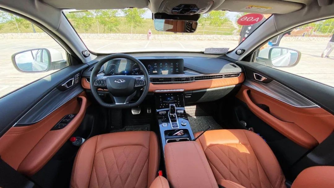 当然,既然是“豪装陆地飞行舱”,重点自然那离不开内饰设计。瑞虎8 PLUS采用了环抱式座舱设计,配合简约的线条,看上去沉稳大气;银黑色与浅棕色形成撞色元素,质感营造得不错。这里有几处亮点设计就不得不提了: