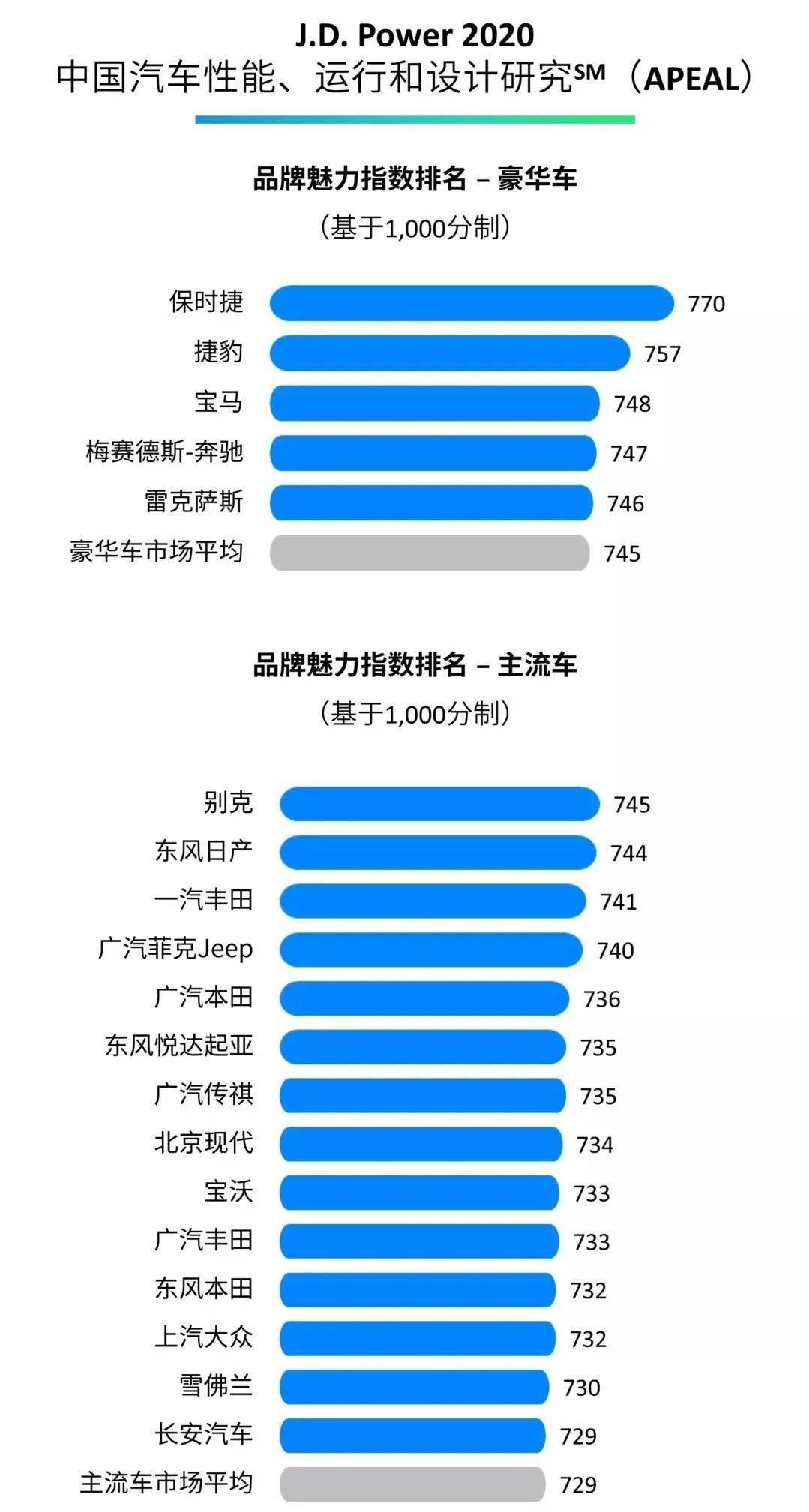 而2020年研究是基于2019年6月至2020年6月期间购买新车的32046位车主的评价,研究涵盖57个品牌的241款车型。据悉,该研究采用了1000分制,而2020年中国汽车行业整体魅力指数为732分。