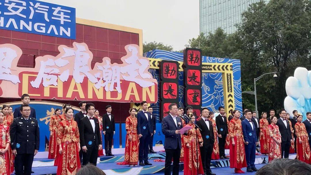 提到2020年的关键词,“国潮”、“后浪”绝对算得上其中之一,那么,两者的融合又会擦出怎样的火花呢?今日(10月31日),以“爱行千里•后浪潮起”为主题的2020年重庆市青年集体婚礼暨长安汽车第九届青年集体婚礼正式举行,来自长安汽车、医护人员和警察等各行业的50对新人一起步入了婚姻殿堂,中式婚礼+年轻“后浪们”无疑成为了现场的焦点。