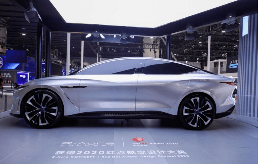 而提到设计,代表R汽车未来设计方向的R-Aura Concept概念车也来到了本次车展现场。对比来看,两台车的前脸家族语言很鲜明,贯穿灯带、上半部封闭的倒梯形轮廓、包含直瀑式竖条的X型下进气格栅等等,有传承也有创新。不过这种颇具概念味道的量产方案,相比友商产品提前走了至少3-5年。