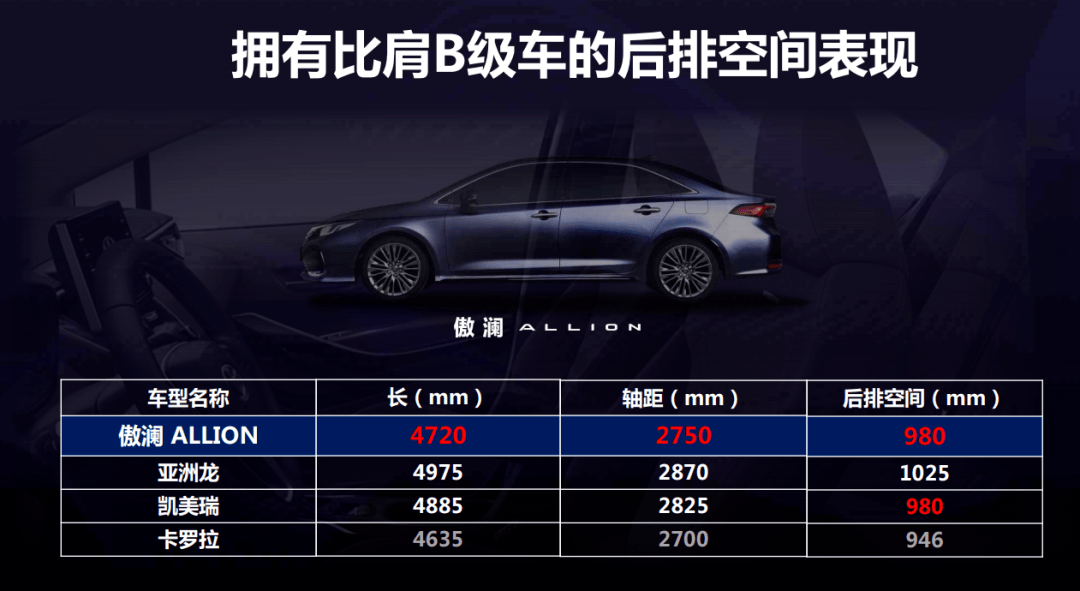 动力和空间尺寸两大硬指标更是按照正统B级车的标准来的。ALLION搭载亚洲龙同款TNGA 2.0L自然吸气发动机+DS-CVT变速器,即便大家没有摸到实车,但开过亚洲龙的秒懂,其细腻、高级的行驶质感让人印象深刻,同样能跟排量主要在2.0L以下A级车形成档次区隔。