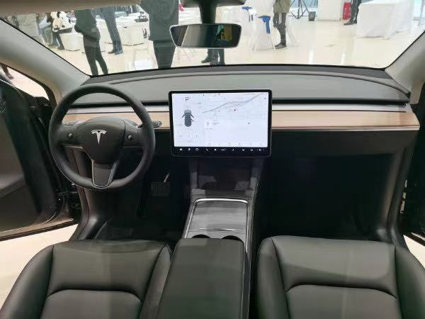 国产Model Y内饰和国产Model 3设计风格接近一致,不过在豪华质感上得到一定的提升,比如在门板上增加了部分木板装饰等等。至于其它细节处的改变,比如原有的两个有线手机充电槽(5W),替换成两个无线充电槽(7.5W),而且表面采用翻毛皮材质,看上去更有质感;其次,中间区域的储物槽采用推拉设计,更实用一些。
